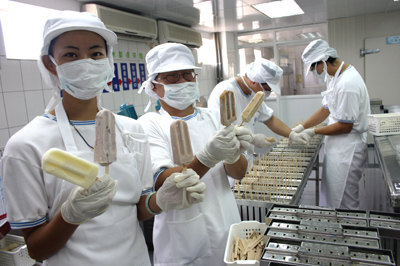 天氣炎熱,高雄縣政府輔導身心障礙者就業的一家工場,因應社會需求及身心障礙者就業需要,投入六百萬元成立製冰工場,現今已生產上市,有紅豆、綠豆、芋頭 等八種傳統口味,清甜好吃,生產過程超衛生,全部開放參觀, 消費者來此買冰,還可看到製冰過程。