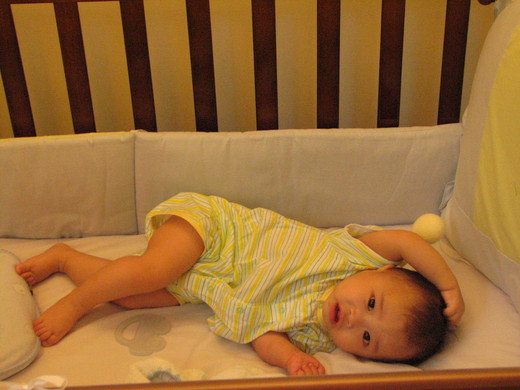 昨天接你回家後,馬麻在煮晚餐爸拔在房間陪你,其實已經很睏的你還是硬撐著和爸拔玩,聽說你邊玩邊打瞌睡,(爸拔在旁邊看著你打瞌睡的可愛模樣還笑的好大聲,真是有點超過!