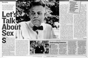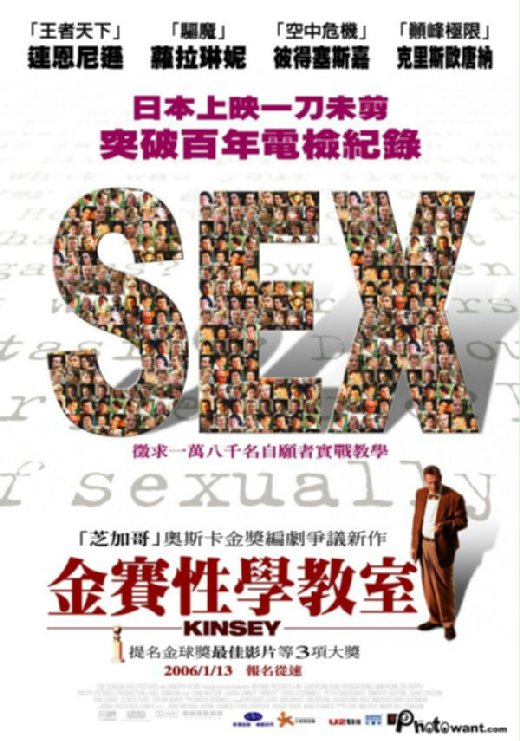 而從影片中,金賽教授(Liam Neeson飾)為了性研究,除將全副心力貢獻在其上外,自己也做出很大的性冒險。甚至是跟著他做研究的學生,彼此間似乎也都毫無秘密可言,儼然成了一個小的烏托邦社會。不可避免地,性的擦槍走火也釀成學生間的不信任以及大打出手。