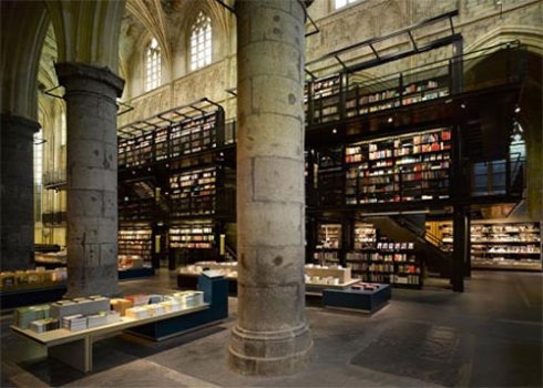 荷蘭一間廢棄教堂以新的方式重生——變作書店,神聖而華麗。教堂近半空間被保留下來,維持原有風格,達到書店與教堂的和諧,讓整個書店籠罩在教堂莊重氣氛中。(圖片取自網路)