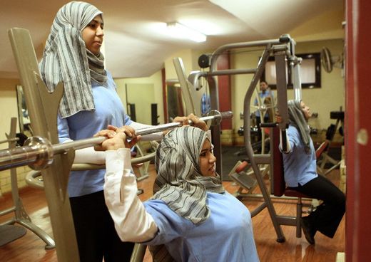 比起埃及的婦女保鑣,在沙烏地阿拉伯,政府明令不准女性參與體育活動,今年八月,更大力掃蕩非法的女性健身房。