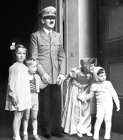 圖說1939年希特勒慶祝50歲生日,照片中孩童是納粹要員的孩子。(圖取自網路)