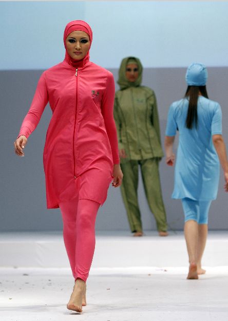 穆斯林觀念較為保守,婦女要戴頭巾、遮住臉,甚至全身包在罩袍裡,她們游泳時怎麼穿著?