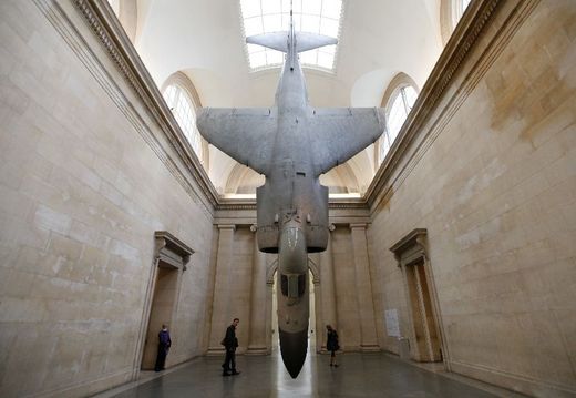 兩架剛退役的戰鬥機稍做加工後,被當成藝術品,搬到英國泰特美術館,在新古典主義的Duveen畫廊展出。展品的作者菲奧娜班納是一位戰鬥機愛好者,這次展出的鷂式(Harrier)與美洲虎(Jaguar)戰鬥機,是迄今她所設計最大的藝術品。