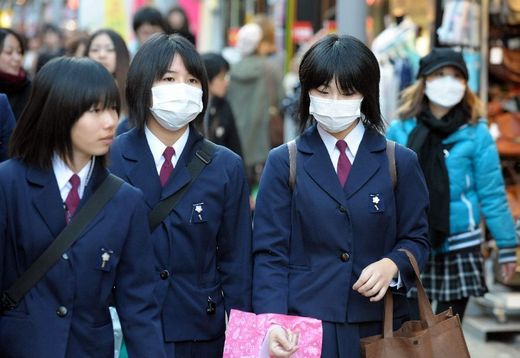 在東京澀谷區,不少高中女生戴口罩逛街,她們並沒有感冒。根據日本博報堂廣告公司的報告,愈來愈多年輕人習慣戴口罩,因為可以遮臉,隱藏自己,讓他們有安全感。