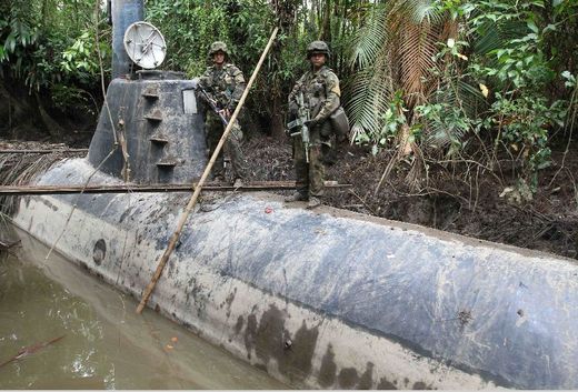 哥倫比亞軍方日前查獲一艘運毒潛艇,由毒梟自製,長