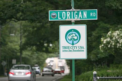 上圖:霍普金頓市把美國樹市的標誌掛上路旁。
