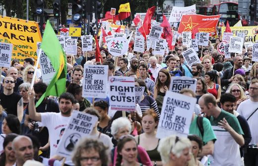 圖:倫敦人遊行抗議騷亂,並呼籲年輕人的權利:「讓我們的孩子們有未來!」