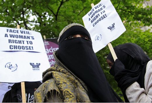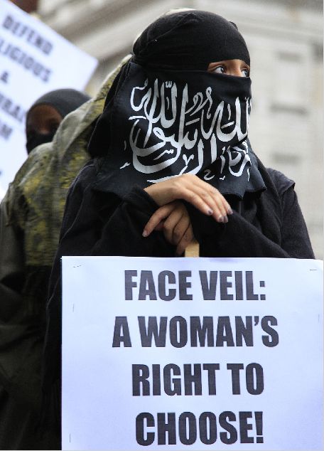 穆斯林女性移民外國,仍穿罩袍、戴面紗,被視為女權不彰,無法融入社會,且有礙防恐,法國決定禁止。卻遭到抗議,要求選擇的權利。(路透)