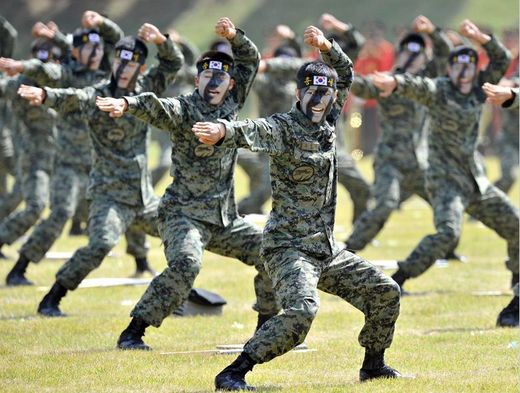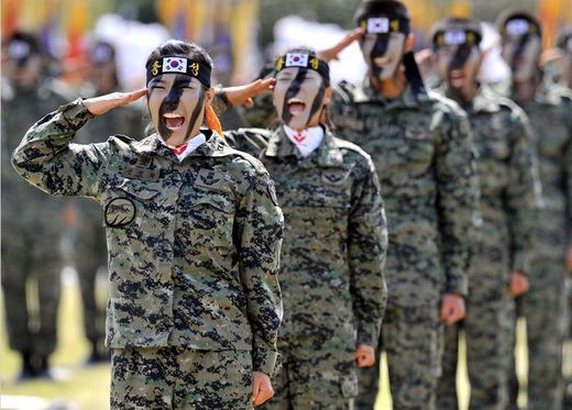 軍人為了不被敵人發現,會在臉上塗抹與周圍環境相符的黑色、棕色、綠色迷彩。通常,軍隊會分發迷彩油,但南韓年輕士兵愛美、護膚,改用化妝品公司出產的。