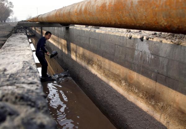 圖:包頭的工廠包圍農村,出處可見巨大的工業廢水排放管。(路透)