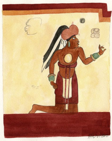 圖:穿精致橙色服飾的人,可能是法師,他負責記錄馬雅曆法。