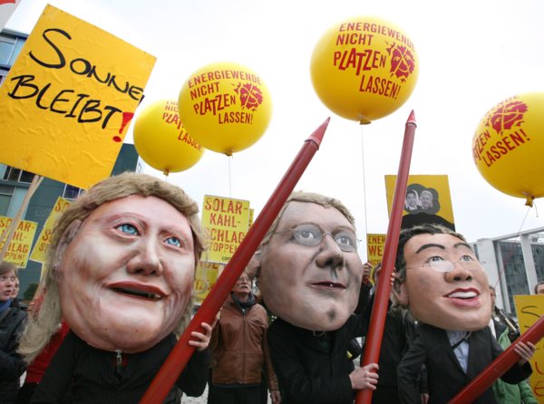 圖:德國政府打算削減太陽能發電補貼,民眾示威抗議者。