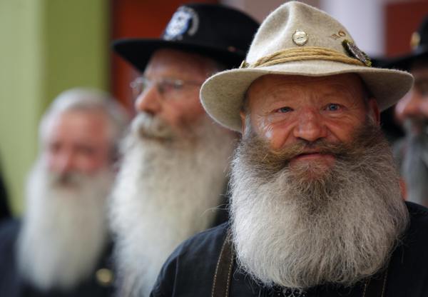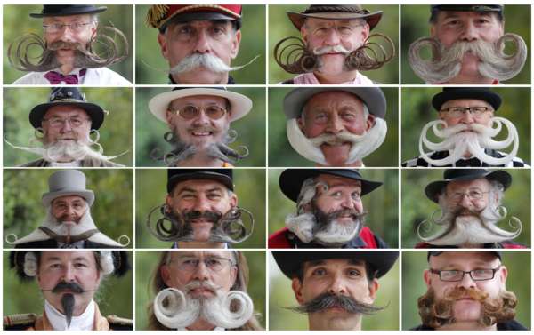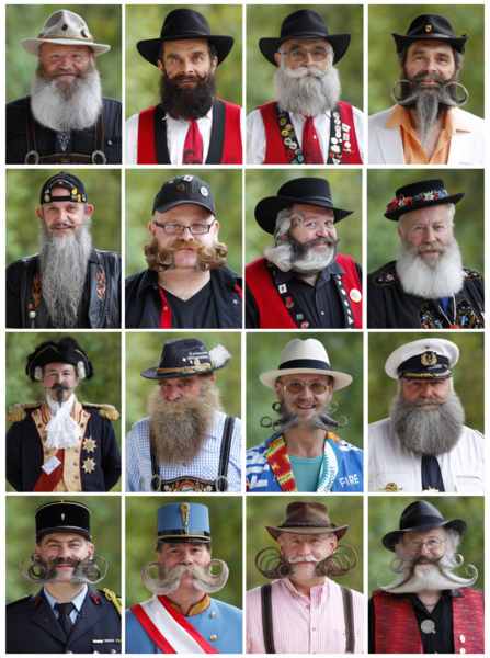 圖:「2012年歐洲鬍鬚和髭鬚錦標賽」在法國舉行,一百多人競逐。鬍鬚(beard)是長在下巴和面頰上的毛,髭鬚(moustache)是嘴脣上的短鬚。有人順其自然長出一叢鬍鬚,有人用吹風機吹出各種「翹髭鬚」。(路透)