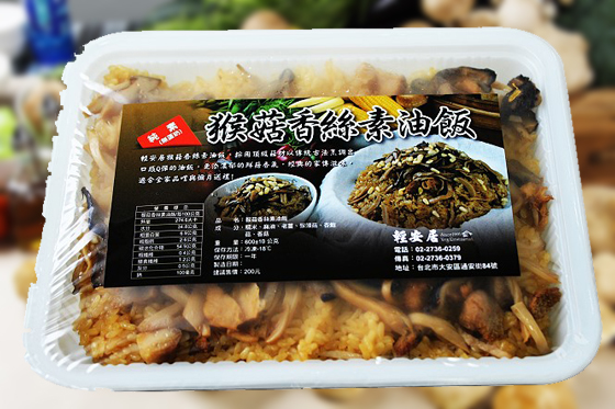 以圓糯米製成,特選新鮮猴頭菇麻油拌炒,採用簡單的烹調方式,保留食物營養及美味,全程每一製作程序皆是手工料理。冷凍真空包裝調理包均通過國際驗證標準,在ISO 22000:2005的工廠環境生產製造,並同時投入新台幣2000萬產品責任險,給予消費者雙重保障。