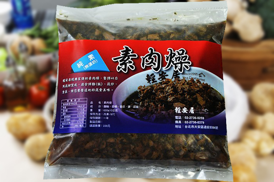 手工限量接單生產的素肉燥,素燥為豆製產品製成,不含防腐劑,最佳賞味期間二個月內食用,以確保素燥新鮮度與香味。輕安居素食嚴選食材與堅持美味與健康,強調手工限量的素食料理包,讓茹素的朋友透過宅配也能吃到新鮮美味的素食料理。