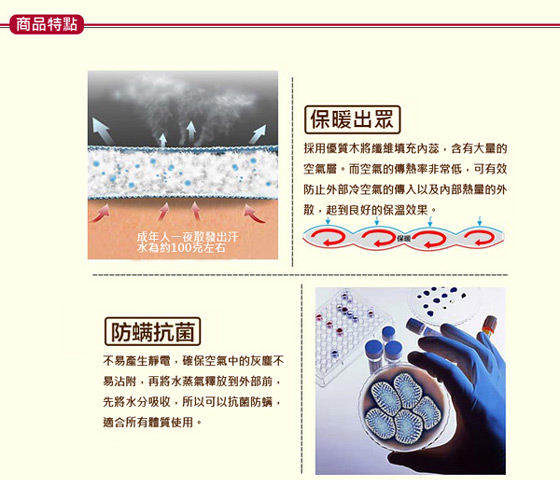 ●保暖出眾,不易產生靜電,抗菌防塵?,適合所有體質使用。