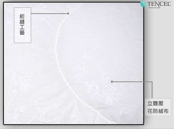 內襯材質:天絲纖維棉+中空聚酯纖維棉