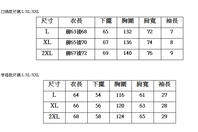 ■顏色/款式:口袋款(黑色/白色/藍色,L/XL/XXL)/數字款(白色/粉紅色,L/XL/XXL)