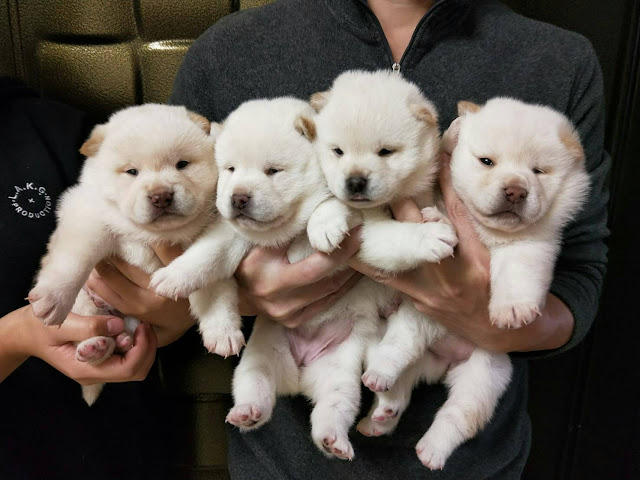再看正面照,每隻白柴寶寶又呆又萌的可愛表情,簡直94存心要來萌翻我們大家的(≧▽≦)