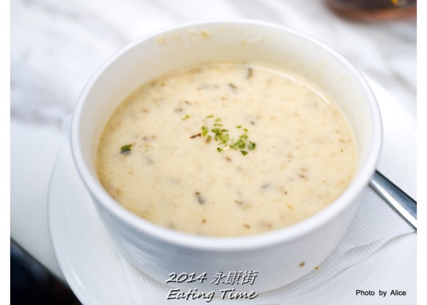 有點像玉米濃湯只是內容換成切碎的香菇
