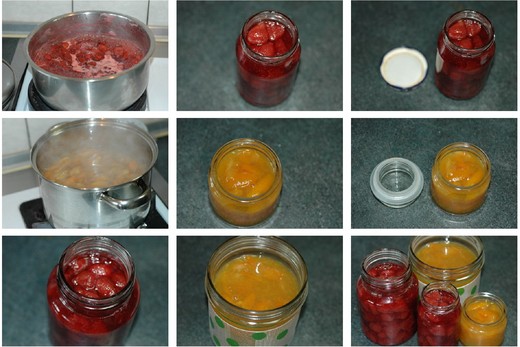 製作草莓果醬的方法如下:首先將草莓洗淨去蒂後,整顆放入鍋中加熱,中火不需另外加水,並且用湯匙輕輕攪拌,約幾分鐘後,可見到整鍋都是草莓釋出的水份,約莫剛好醃過草苺,此時可加入等同草莓一半容積的糖再攪拌,如果用麥芽糖更佳,可增加草莓醬的黏稠度,如此持續三十分鐘後,即可關火,讓果醬自然冷卻,鍋溫降至適溫後,就可用玻璃瓶裝罐,在放入冰箱,就可以享用,無論是早餐用來塗抹土司,或者加水稀釋當飲料,都是極佳的自然健康食品,是很值得推薦容易的居家DIY食品。