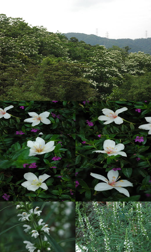這次登山健行,在公路旁的一戶農舍前,發現一叢叢未曾見過的草本植物,它的花梗像蘆葦從中向上抽出,狀似稻穗,花色純白約三公分,多花總狀,據這家居民說叫白玉母草,挺好看的,但還沒找到確實的資料查證。
