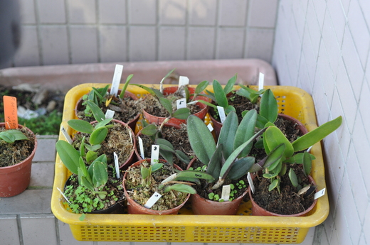 高大中先生十月中來台,此行風塵僕僕之餘,仍然帶來了十個品種蘭苗,每種各兩棵,都是特選有特色的種苗,盛情難卻之餘,也倍感栽培的壓力,最近原本已放淡照顧蘭花的心思,看來隨緣之外,還得加一些觀照才行,也許不即不離才是蘭道。