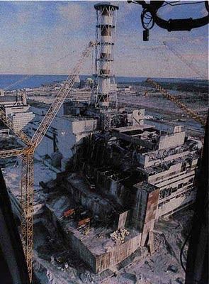 應爐。消防員們一邊用水龍帶滅火,一邊用消防鍬把致命放射性的反應爐殘骸扔下渦輪機廠房房頂。此時汽輪機廠房屋頂的輻射照射強度為2萬倫琴,