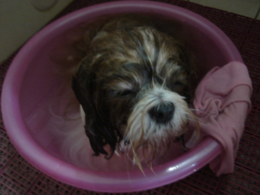 呵!呵! 妳們看看我的眼睛快瞇起來了, 差點就睡著了ㄋ, ㄛ!ㄛ!太舒服了呀! 拍這張照片怪不好意思的, 人家在洗香香耶!