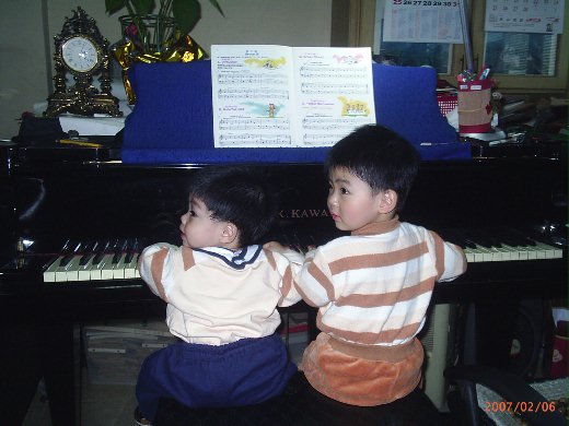 學鋼琴的時候~雙手放在桌上,每個手指頭隨意彈奏,唱著"噹~噹~噹"