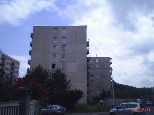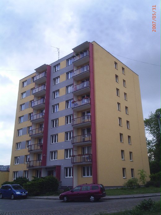 有時候經過這種共產時代的國民住宅,哥哥就會很直接的說"這個不好看"(下圖一)。通常這種公寓都是再等新的油漆,我就會指臨近剛上色完工的公寓告訴哥哥:"不會啊,你看這種building也有不同顏色的喔!" (下圖二)這時弟弟如果知道顏色的名稱就會插嘴的說"yellow ㄋㄟ!",我就會再追加一句:"Beautiful color isn't it?","好漂亮的顏色,有沒有?",這樣哥哥就不會只記得灰色的公寓不好看了。