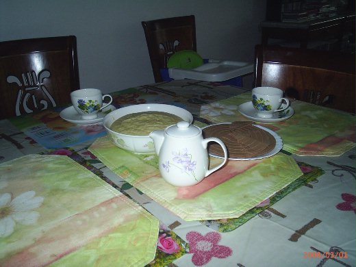 第一次讓他們吃下午茶的時候我沒有事先告訴兩個寶貝,只有一起做蛋糕的時候說等午睡起來蛋糕就可以吃了。所以當他們看到桌上的驚喜,兄弟倆真的是笑的合不攏嘴(哥哥的嘴巴真的一直合不起來,從洗手到我把一切都弄好,他只要看到桌上的一切就笑!弟弟則是高興的又唱又跳的)! 我告訴他們"this is tea time!",嘴巴甜的弟弟馬上說"tea time好好吃!",比較靦腆的哥哥也說"I like tea time!"。小孩子的眼睛非常利害的,一看到餐具就知道這些都是平常爸爸媽媽喝下午茶才用的餐具。我讓他們知道現在他們也可以用這些漂亮的茶杯和盤子,但是舉動就不能太大以免不小心打破了。同時我還告訴小朋友,吃下午茶就要試著有小紳士的態度,不可以大聲嚷嚷,嘴裡有東西不要開口說話,更重要的是用這些餐具時盡量不要弄出聲音。其實這些平常在家吃飯的時候我就會不停的唸,只是現在有了這些大人的餐具讓他們感覺真的很不一樣,所以這時再叮嚀他們做好基本的餐桌禮儀就比較看得到效果了。我覺得最好笑的是他們喝茶的舉動,剛開始因為杯子的茶比較多所以會慢慢的小酌,等到杯子裡的茶已經快喝完了他們就拿起杯子大聲的吸個精光,然後得意的看著我用台語說:"答!(喝完了!)",把我精心製造的氣氛全破壞了!後來我就教他們說:"May I please have more tea please!",然後吃完了要跟媽咪說:"It was lovely tea, thank you!"&"It was delicious, I really appreciated it."。這樣感覺才會比較有氣質一點,本來我還想教他們要學ladies first,可是想想算了,弟弟坐上大椅子還須要用爬的,而且要請哥哥拉椅子讓我坐,不用說椅子一定要用拖的,光想到這些就很煞風景了,更別說是培養氣氛。慢慢來吧,先有這一小步的開始,等他們長高一點再來更高級的訓練!^^真沒想到一場感冒居然讓兄弟倆提早學習喝下午茶,看來以後我不用自己偷偷喝茶了,可以固定時間母子一起培養氣質了!