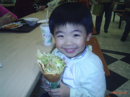 之後上台北的時候,我們先到新光三越百貨的美食街解決午餐。兄弟倆第一次看到這麼大的可麗餅,真不知道該怎麼吃啊!^^離開台北之前,我們也有到台北車站上面的微風美食街見識一下它的多元化,真的好多選擇喔!在那裡小朋友們第一次吃到烏龍麵,直說「好吃!好吃!」