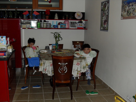 自此之後,我就期許自己有一天也能天天享受這種幸福的畫面。幸運的我,就這樣遇上了一個很有默契的爸爸。因為爸爸也喜歡邊吃邊聽音樂,所以只要我們在家吃飯,無論是哪一餐,一定都有好聽的音樂陪襯著我們的話題。生了哥哥之後,我們本來都是聽多種不同的音樂,就先暫時改為水晶音樂。等哥哥開始牙牙學語的時候,只要爸爸不在家,我們用餐聽的音樂就改為兒歌和童謠。搬來布拉格之後,為了讓兄弟倆繼續接觸台語,小朋友用餐的時候就聽台語童謠。現在兩個寶貝都很會操作音響自己放CD來聽,吃飯前,他們就會互相商量要聽故事還是音樂。不過只要爸爸在家,用餐時的音樂欣賞還是由爸爸決定。爸爸的音樂CD很多元,有美國爵士樂、中英文的流行音樂、古典音樂精選、及不同國家的民俗音樂。雖然我們現在的用餐氣氛還不到我所想像的那麼有氣質(因為兩個寶貝太聒噪了!),但的確和我之前所體驗的美好經驗相差不遠。