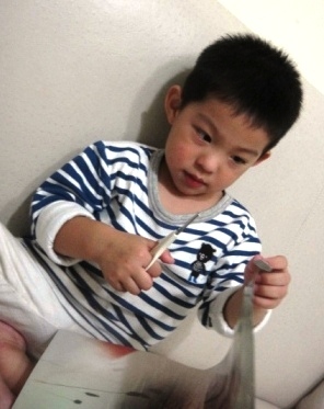 然後我就儘量找些可以剪的東西給他剪.