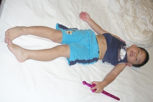 以一個非常舒服的姿勢躺在床上,(睜著眼睛哦.)