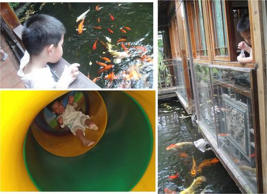 還可以喂魚,豆豆滿頭大汗的喂了好久的魚;