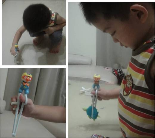 前天買了把訓練筷,豆豆喜歡的不得了.