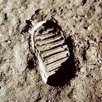 2. 阿姆斯壯的那一腳印 ---- 月球上沒有水, 沙子是極乾燥狀態根本不可能留下那麼清楚的印痕, 尤其是在地球上 180 公斤只等於月球上的 30 公斤.重量不夠印成這樣