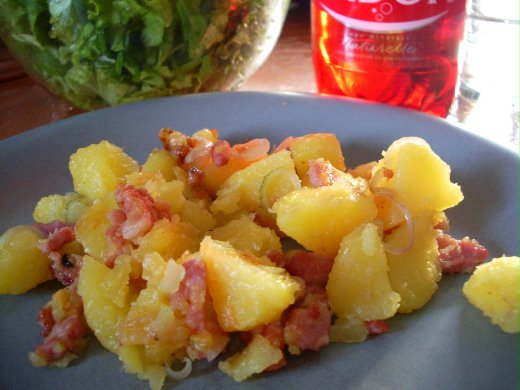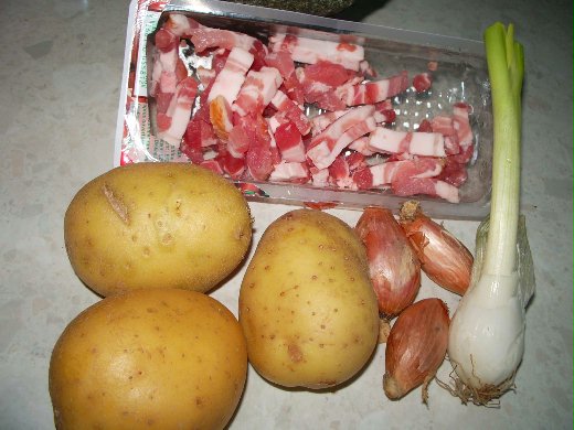 馬鈴薯800g / 小臘肉丁 200g / 紅蔥頭三四個 / 橄欖油一大匙/ 鹽˙黑胡椒少許