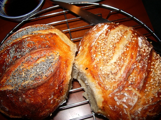 最棒的是每次想要作麵包時, 隨時從冰箱的保鮮盒中拿取一團發酵好的麵團, 一個小時後就有香噴噴的麵包可以吃了.