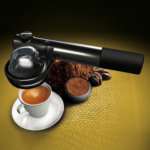 他的原理很簡單 , 跟打氣機差不多, 就是用一個幫浦將氣打到密封的容器內最多可達十六大氣壓, 然後注入熱水和填上咖啡, 按鈕一按 , 品質不輸專業咖啡機的香濃 Expresso 就會泊泊流入杯中, 而且還有濃密的一層咖啡泡在上面呢!