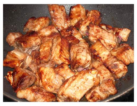 3. 用中火慢速翻炒同時灑入胡椒粉, 要確定每一塊排骨上都有灑到.