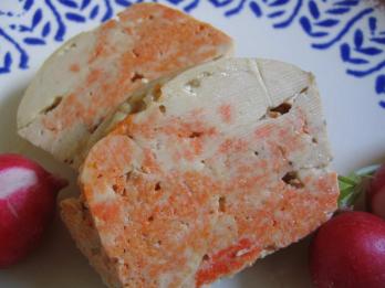 新鮮的安康魚肝 -- 蒸熟後切片的 -- 不賴呢!!