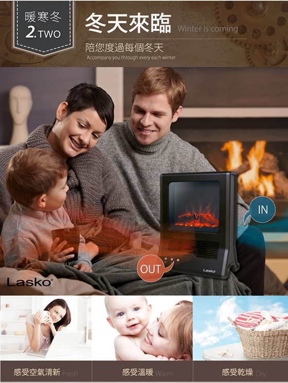 品茗:【美國Lasko】火焰星3D仿真動態火焰濾網式壁爐陶瓷電暖器CA20100TW