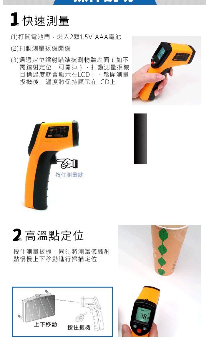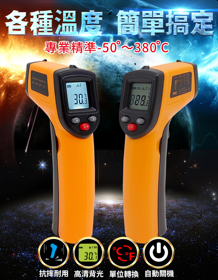 ●採紅外線專業精準測溫,各種溫度,一隻搞定