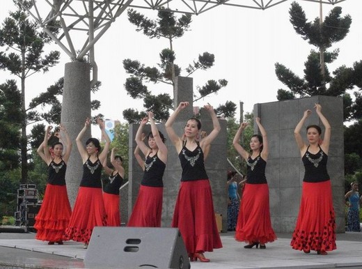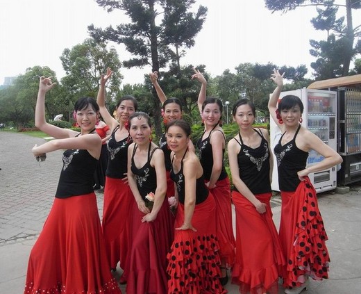 佛朗明哥不但舞臺上表演臺下更是一半穿著舞衣同舞歡