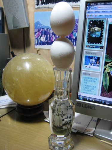 而二年前就在端午節中午把蛋立在水晶球上分享