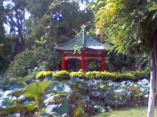 印像中那片相思樹林小山坡後方,是我夢寐以求的君子之湖,這是一丁點的台北市,僅存的瑰麗荷池,輒有文人雅士,如醉如癡的吟詩作畫;果不出所望,一對祖孫,怡然寫生湖畔,雋永生動的畫布,題詞寫出:「關關雎鳩,在河之洲,窈窕淑女,君子好逑。」好美的意境!我卻半開玩笑說:「菡萏香消翠葉殘」或為允當。老先生直豎大拇指,連聲說好.好.好..!那小女孩很靦腆對我微笑,羞怯的遮掩作品,讓我好生尷尬,隨即乘風離去。